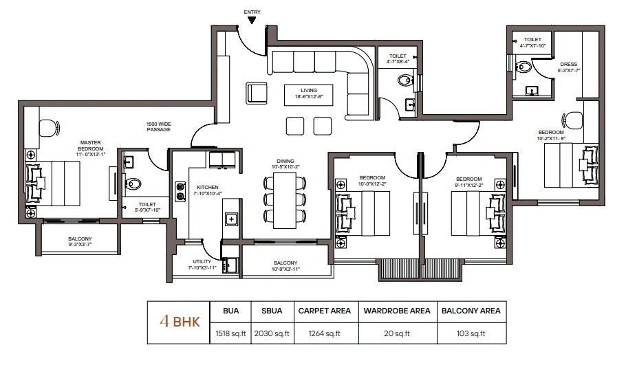 | 4 BHK | 2030 | Super Buildup Area | On Request |