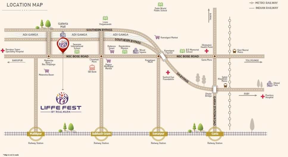 Centrally located in Rajpur Sonarpur, Kolkata, Liffe Fest provides easy access to Southern Bypass Kamalgazi and popular transit points such as Kavi Nazrul Metro, Sahid Khudiram Metro and Sonarpur Station. Popular Swarnim International School is just minutes away. This location also ensures convenient access to nearby markets, schools, banks, and healthcare centers.