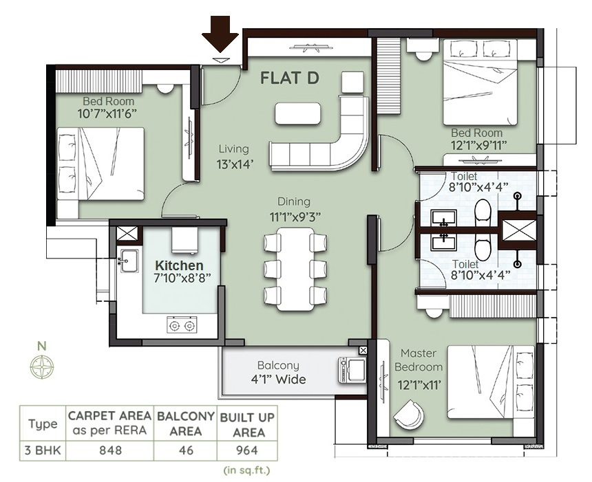 | 3 BHK | 820 - 964 | Buildup Area | On Request |
