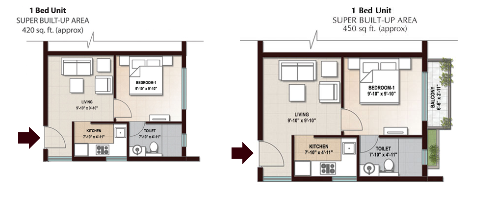 | 1 BHK | 420 - 450 | Super Buildup Area | On Request | |